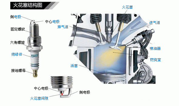 火花塞的功用是将上万伏的高压电引入燃烧室,并产生电火花点燃混合气,与点火系统和供油系统配合使发动机作功,在很大程度上共同决定着发动机的性能。